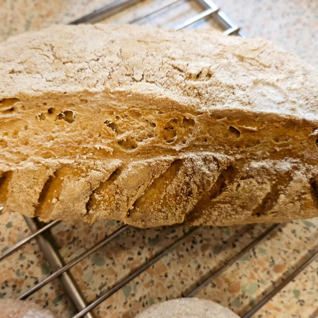 GF oat egg soya milk tapioca starch potato starch xanthan gum olive oil salt water sordough starter, sorghum flour, Buckwheat Flour, millet flour.